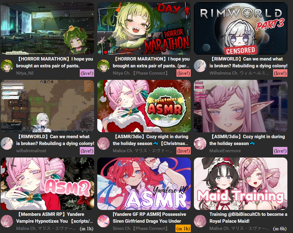 This is a thread for the members of Phase Connect's Saga generation.>Upcoming streams:https://pomu.pages.dev/saga>Links:- Bibi Biscuit | https://x.com/BibiBiscuitCh | https://www.youtube.com/@bibibiscuitch | https://www.twitch.tv/bibibiscuitch- Sinon Sinfonia | https://x.com/SinonSinfonia | https://www.youtube.com/@SinonSinfonia | https://www.twitch.tv/sinonsinfonia - Wilhelmina Frost | https://x.com/wilhelminafr0st | https://www.youtube.com/@wilhelminafrost | https://www.twitch.tv/wilhelminafrost - Anya Nyabyss | https://x.com/AnyaNyabyss | https://www.youtube.com/@AnyaNyabyss | https://www.twitch.tv/anyanyabyss - Malice Evermore | https://x.com/MaliceEvermore | https://www.youtube.com/@maliceevermore | https://www.twitch.tv/maliceevermore - Nitya Nil | https://x.com/Nitya_Nil | https://www.youtube.com/@Nitya_Nil | https://www.twitch.tv/nitya_nil >Related threads:>>>/vt/crrroc/>>>/vt/pcg/>Previous thread:>>107465567