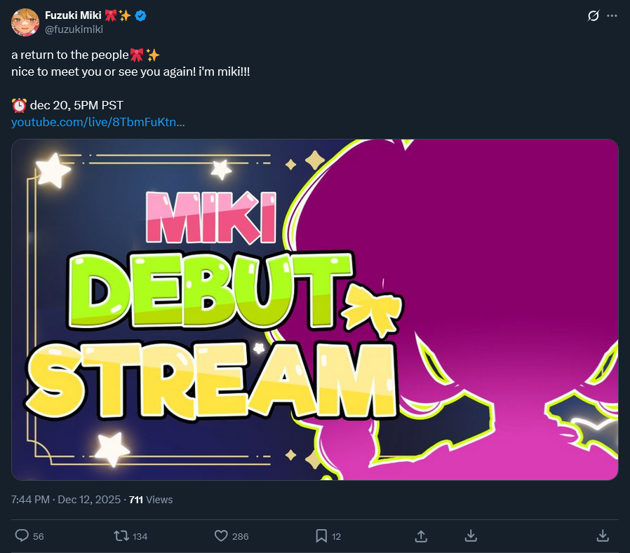 https://x.com/fuzukimiki/status/1999656585824731203https://www.youtube.com/live/8TbmFuKtnek