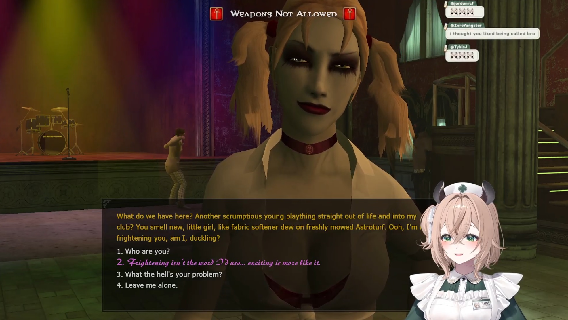 Ongoing Streams part 2Ririka is streaminghttps://www.youtube.com/watch?v=lNAv0FIudekNimi Nightmare is playing Vampire the Masquerade Bloodlineshttps://www.youtube.com/watch?v=Db54iFFWLWcTenma is playing Knights of the Old Republic 2 The Sith Lordshttps://www.youtube.com/watch?v=naQChwWN_rcMimi Puffz is debuting her 2.0 Modelhttps://www.twitch.tv/mimipuffzNina Saotome is playing Vampire the Masquerade Bloodlineshttps://www.twitch.tv/ninanininClover Chibi is playing The Legend of Zelda Ocarina of Time Randohttps://www.twitch.tv/cloverchibiIomi is playing Hitman 2 for PS2https://www.twitch.tv/iomi_ioMiridae the Giraffe is playing Chrono Crosshttps://www.twitch.tv/miridaethegiraffeSigrid and Bird are playing Sonic Adventure 2 Battlehttps://www.twitch.tv/sigridandbirdMarisa is playing Banjo-Tooie Randomizerhttps://www.twitch.tv/imakuniYumanea is doing 3D karaokehttps://www.twitch.tv/yumanea_Beuchi is streaminghttps://www.twitch.tv/beuchiism