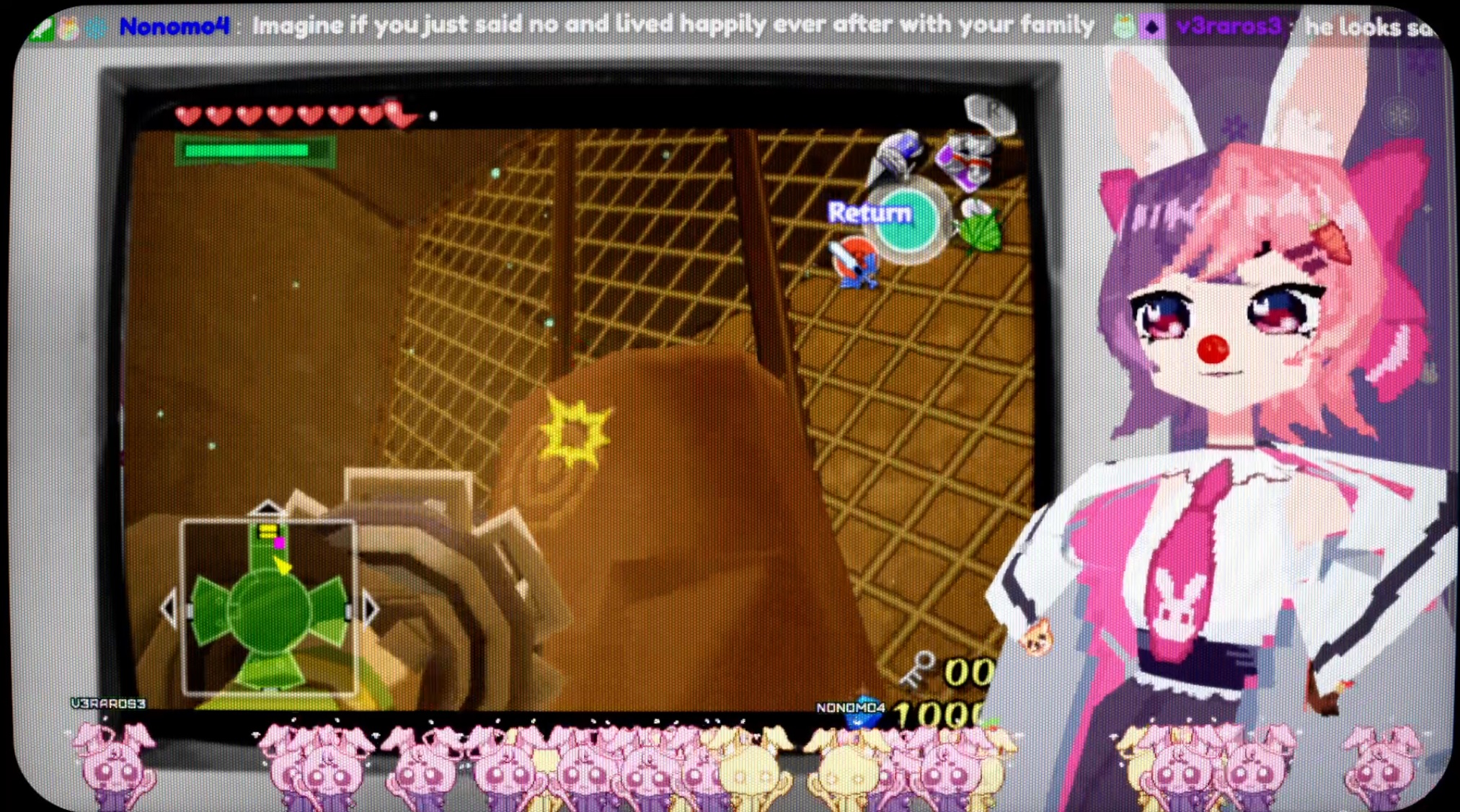 https://www.twitch.tv/cloverchibi green gnome thing doing randomized ocarina of time