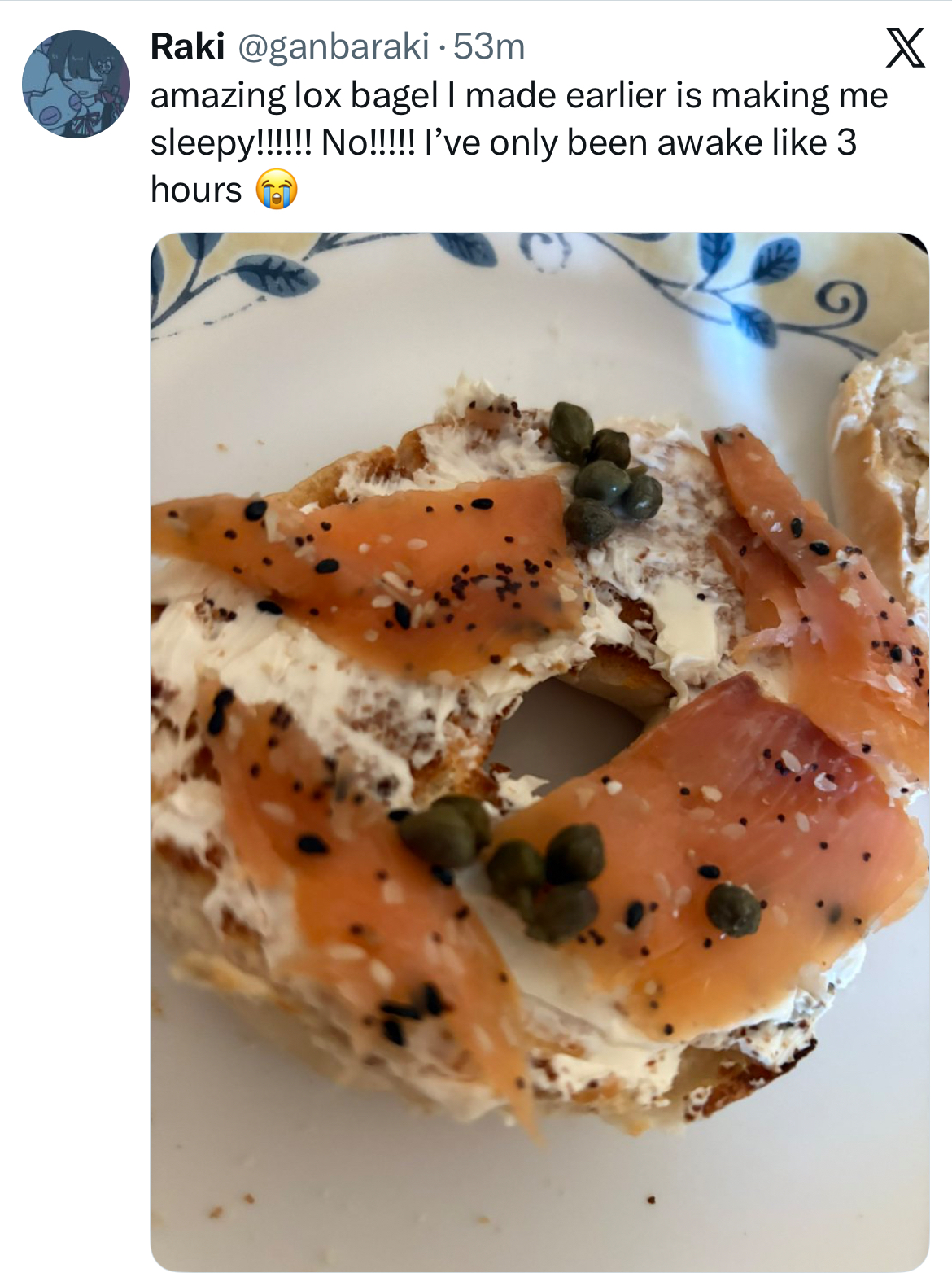 Raki struggling to stay awake four hours after she woke up at 2 pm because she ate a yummy bagle