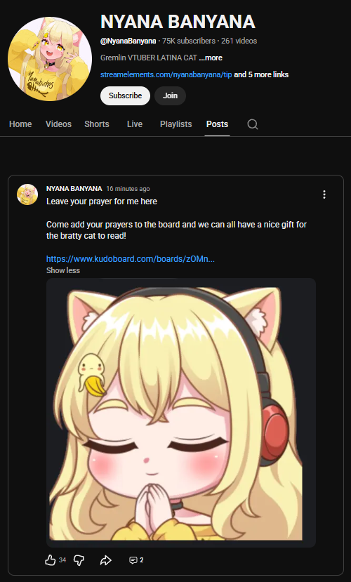 Nyana posted on her YT:https://www.youtube.com/@NyanaBanyana/posts