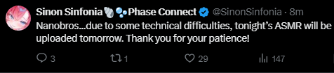 Tech issues for Sinonhttps://x.com/SinonSinfonia/status/2000445008269455540