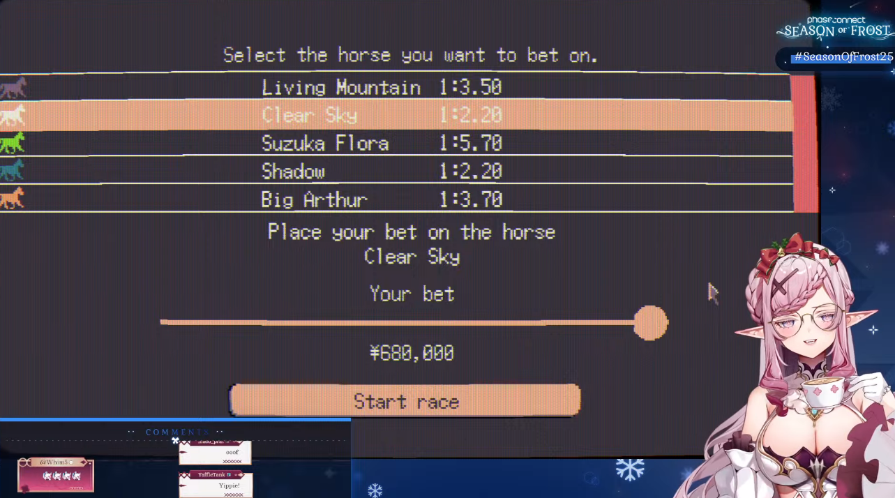 Malice is betting everything she has on Clear Sky!