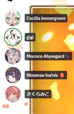 >>107675406>Cecilia Immergreen>Mococo Abyssgard>Ninomae Ina'nis>さくらみこ>gigiGG is the Cher of hololive