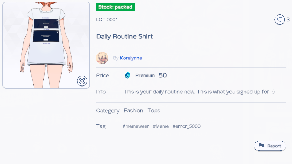 >open holoASS>rank #6 in the shop is a t-shirt about logging in every day for the 20 free coins