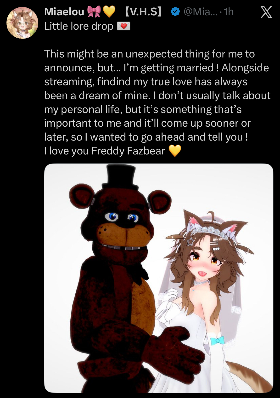 >>107676135She likes kayfabe, she likes role-playing, and she wants people to play along with her.Apparently twitchfags think this is insane and cannot think that she likes the illusion.