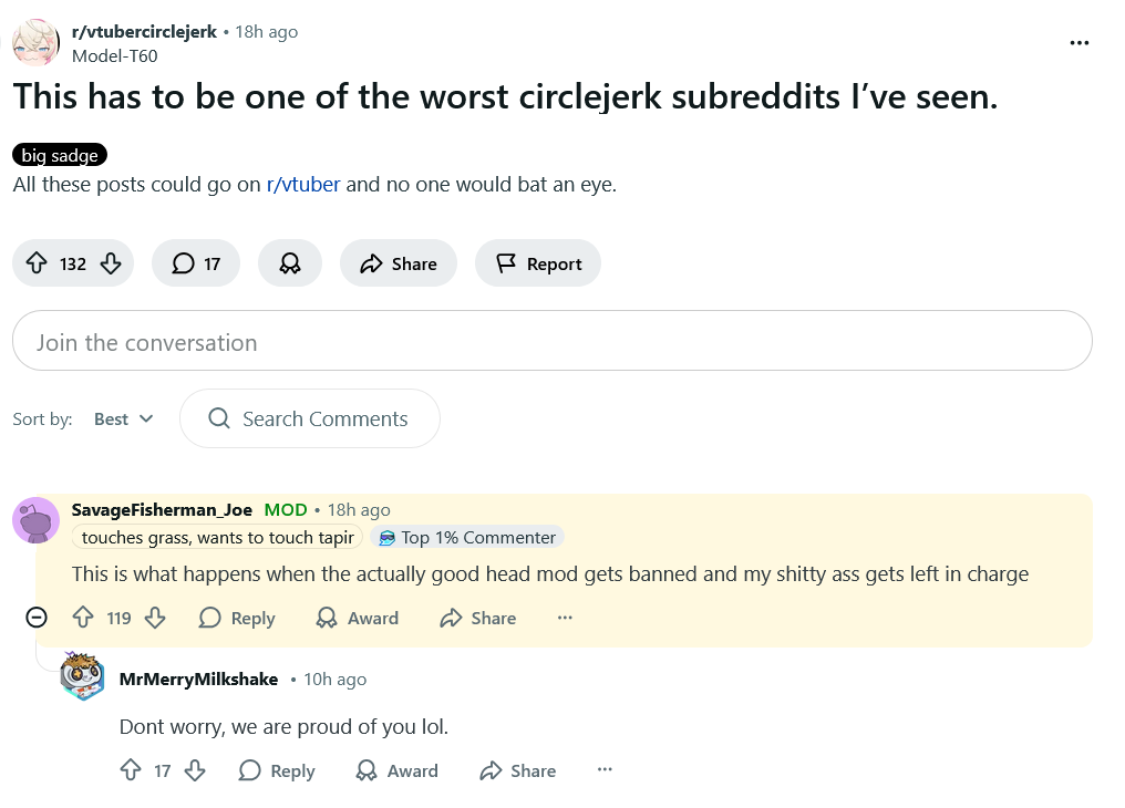 >>107675544Nothing can be done to make male vtubers work at this point in time. It's just not worth trying to force it to work, or trying to "fix" it. Any man that wants to stream is better off being a normal streamer, vtubing doesn't add anything to it and in fact makes it worse. I'd rather see a guy singing and playing guitar very well than if he did it as a faggy male vtuber. Vtubing is for women, all the way. It's the one area in streaming and content creation they fully own. Even if the guy is fucking awesome at games, full tryhard, EVO fighting game champion, speedrunner world record holder, the bro-est of all bros, funniest guy in the room and not cringe at all... he'd still be better as a normal streamer. I genuinely feel sorry for any talented guy out there still trying to become the one that "fixes" male vtubing and giving it a sincere and honest go at it. It just won't work.