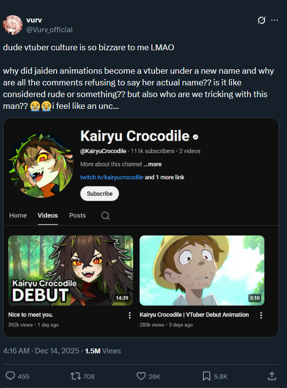 >Kairyu is actually respecting vtubing as a medium, deleting comments that mention her roommate at shit>Twitter shits itself going "I DON'T UNDERSTAND"Jesus christ
