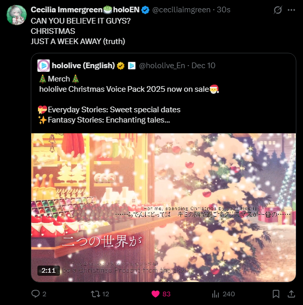 >>107698784if christmas is in 1 more week that means this should be her last week of travelling right? surely she does a vrc stream after christmas.