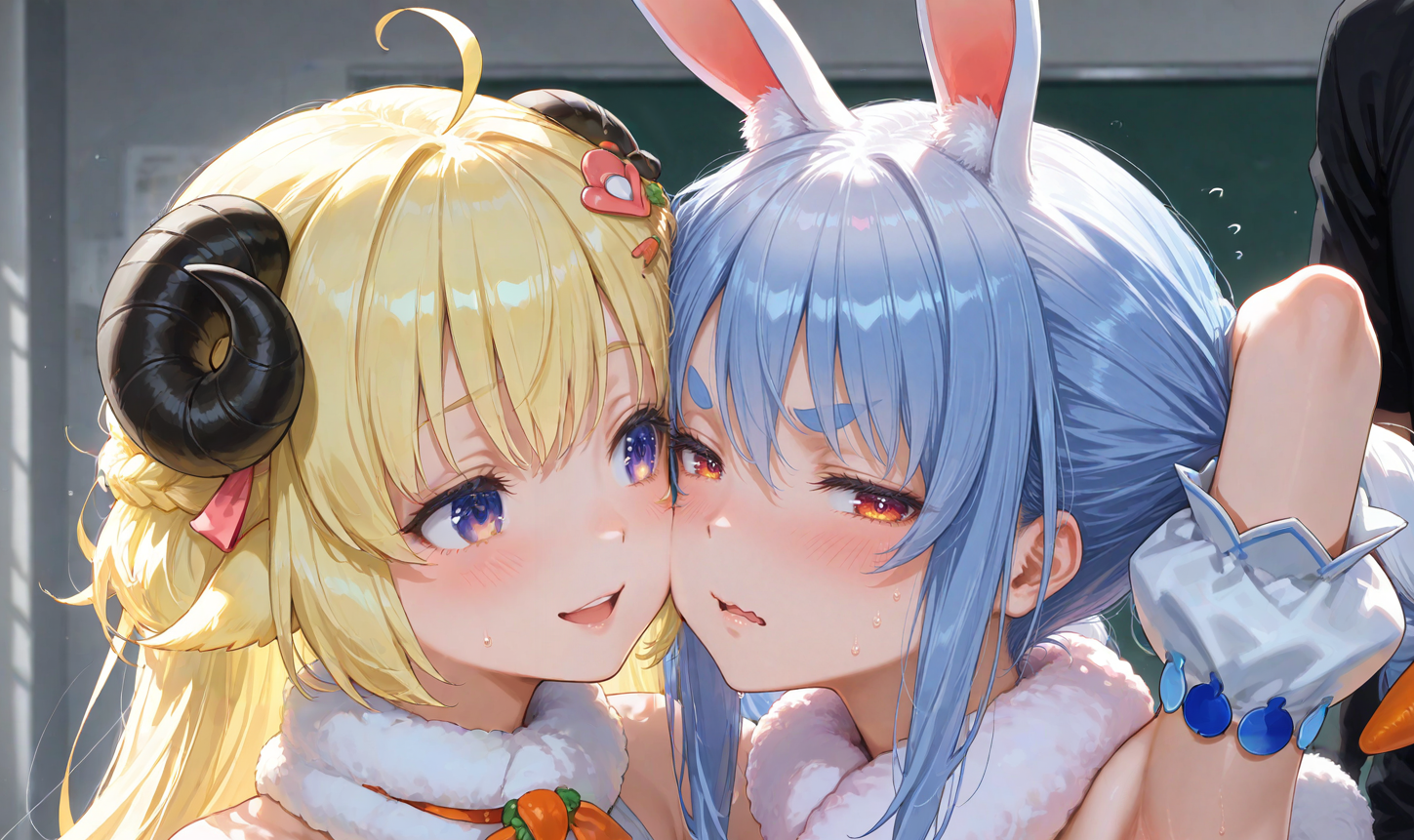 >>107768028>>107768079https://litter.catbox.moe/gdok6kmmszxv3xep.pnghttps://litter.catbox.moe/q41jiffk27e46e34.pngMarine and Ririka with my blanket smol tags left in the prompt. Ririka almost came out big enough, but Marine is definitely too small.Also they have dicks.