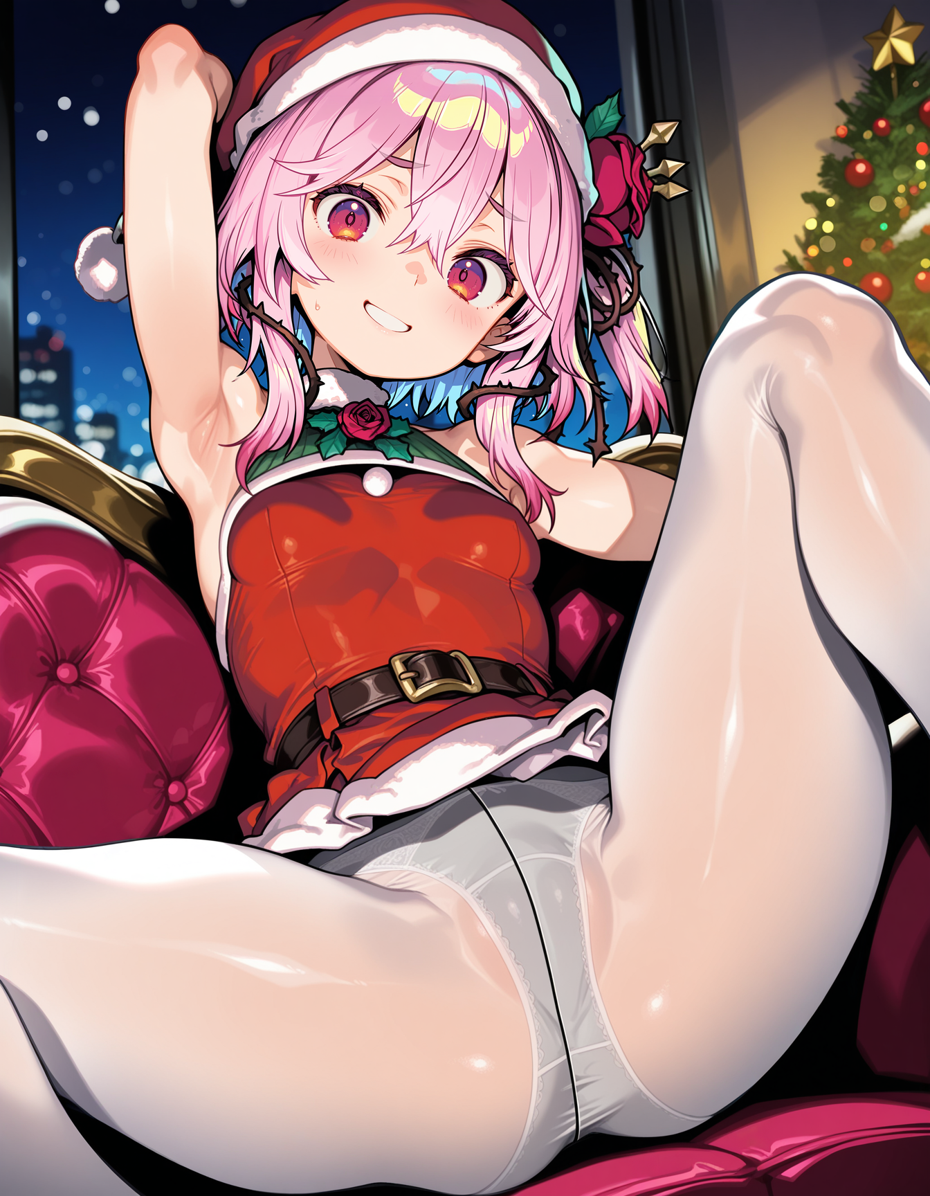 >>107756097Re-requesting Marimari_En in a Sexy Santa outfit on a couch or bed leaning back and legs spread with her sock covered feet in the viewers face. Panty shot and thick thighs please.