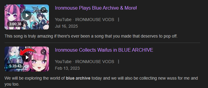 >>107777854Supposedly her new mama is a Blue archive artist and that qualifies her. Her liking blue archive is probably a grift like with metal gear solid considering she never played blue archive before that point