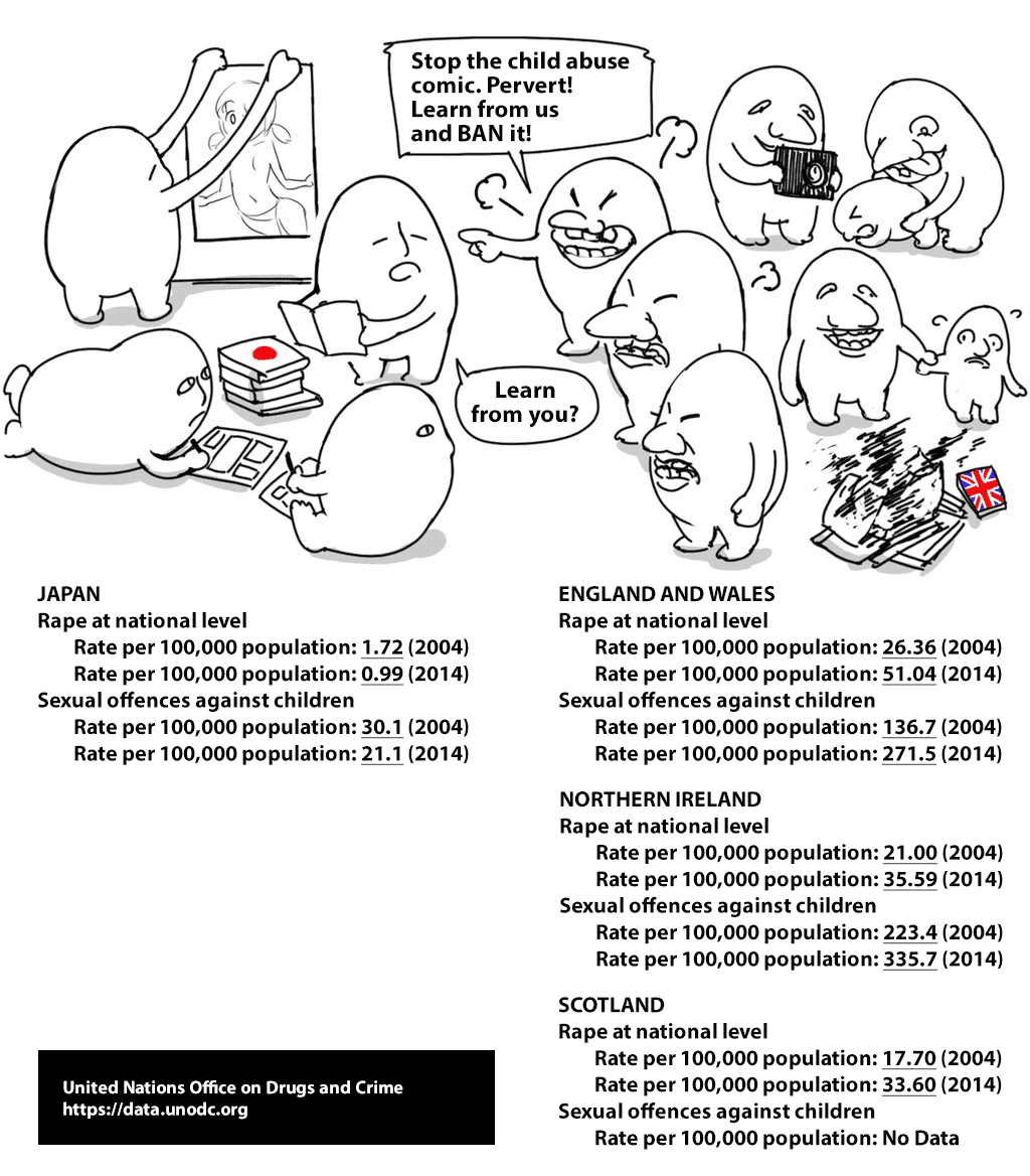 >>107786243No, it doesn't fall apart because trying to claim underreporting is solely responsible for the difference and "trust me bro in reality Japan is a lot worse than other countries and it's specifically because of lolicon media, i know because voices in my head said so and iaccuse you of wrongthink if you don't accept my delusions!!!" is a really shitty argument with zero basis in reality, only wishful thinking.Yeah, some underreporting is certainly there. You don't know how much though. You know what's also there however? Underreporting is also prevalent in all other countries, not only in Japan. Pakistani rape gangs in UK were operating for DECADES and governement was refusing to do anything about them despite locals crying for help, police was pretending they don't exist. And yet, despite that actually confirmed, later documented underreporting in UK, contrary to the imaginary claimed but still unconfirmed underreporting in JP, stats were clearly showing Japan is doing better.