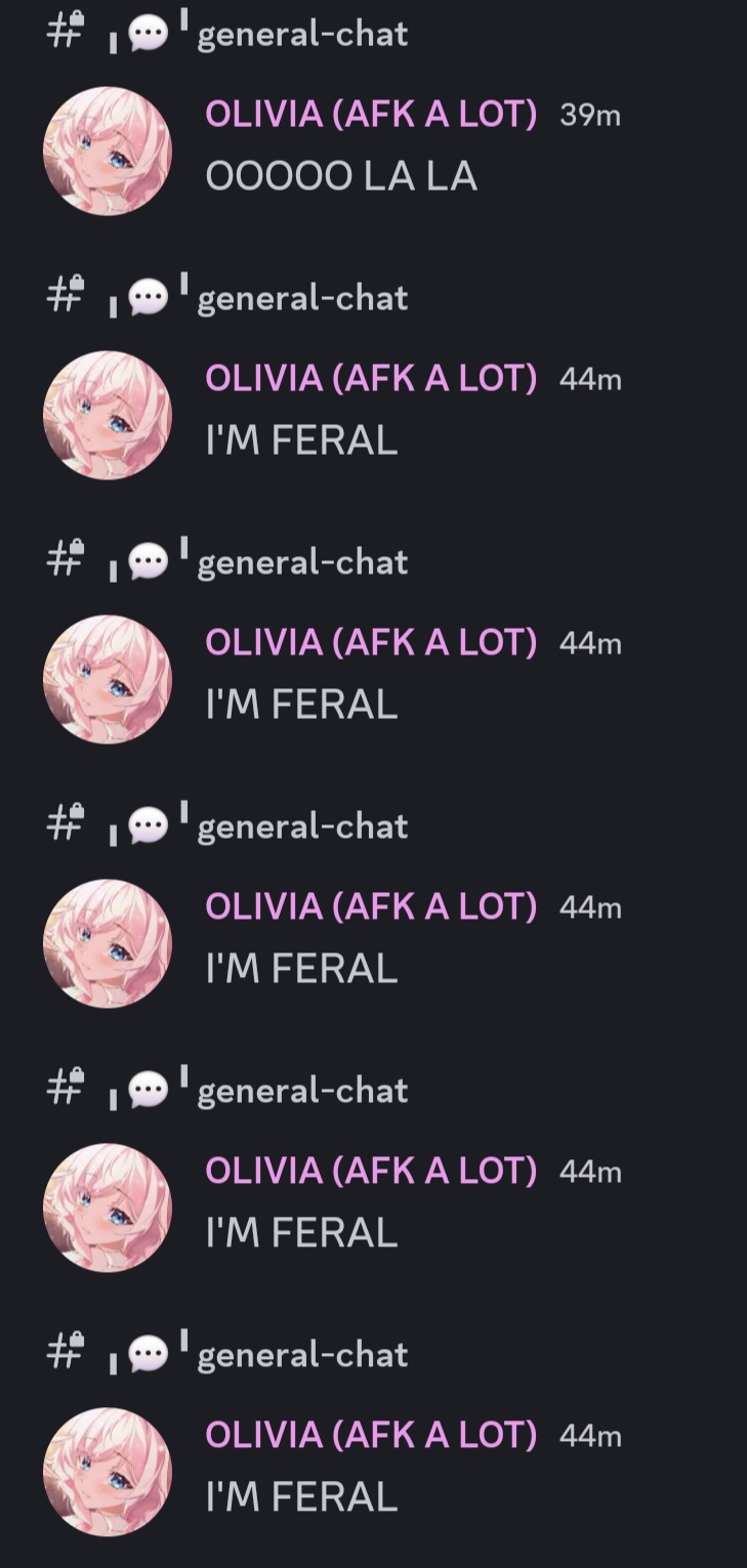 >>107833728She was in VC for 20 minutes and it's BADLike "sponsor is pinging her wondering where she is and she won't leave" bad