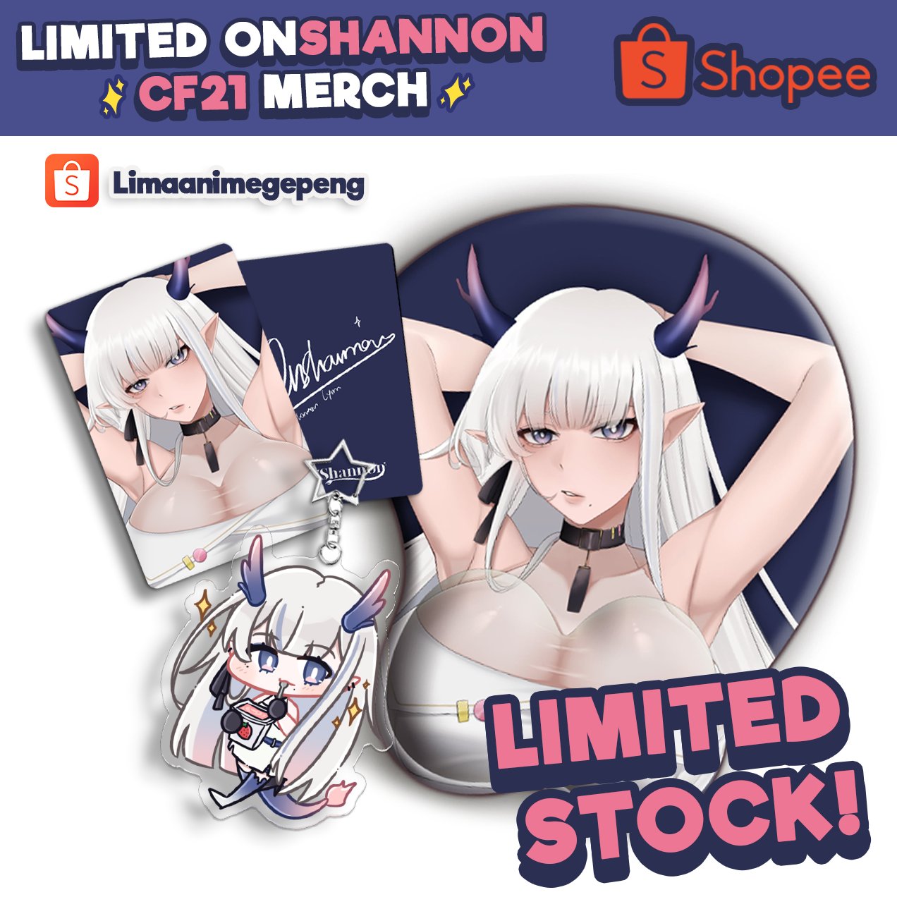 >>107834612If you missed on Senon CF21 merch, you now can purchase them!https://x.com/ONShannon_/status/2000899035310514600Photocards, keychain, and booba mousepad are all available in limited stocks, and you can pruchase them here:https://shopee.co.id/limaanimegepeng