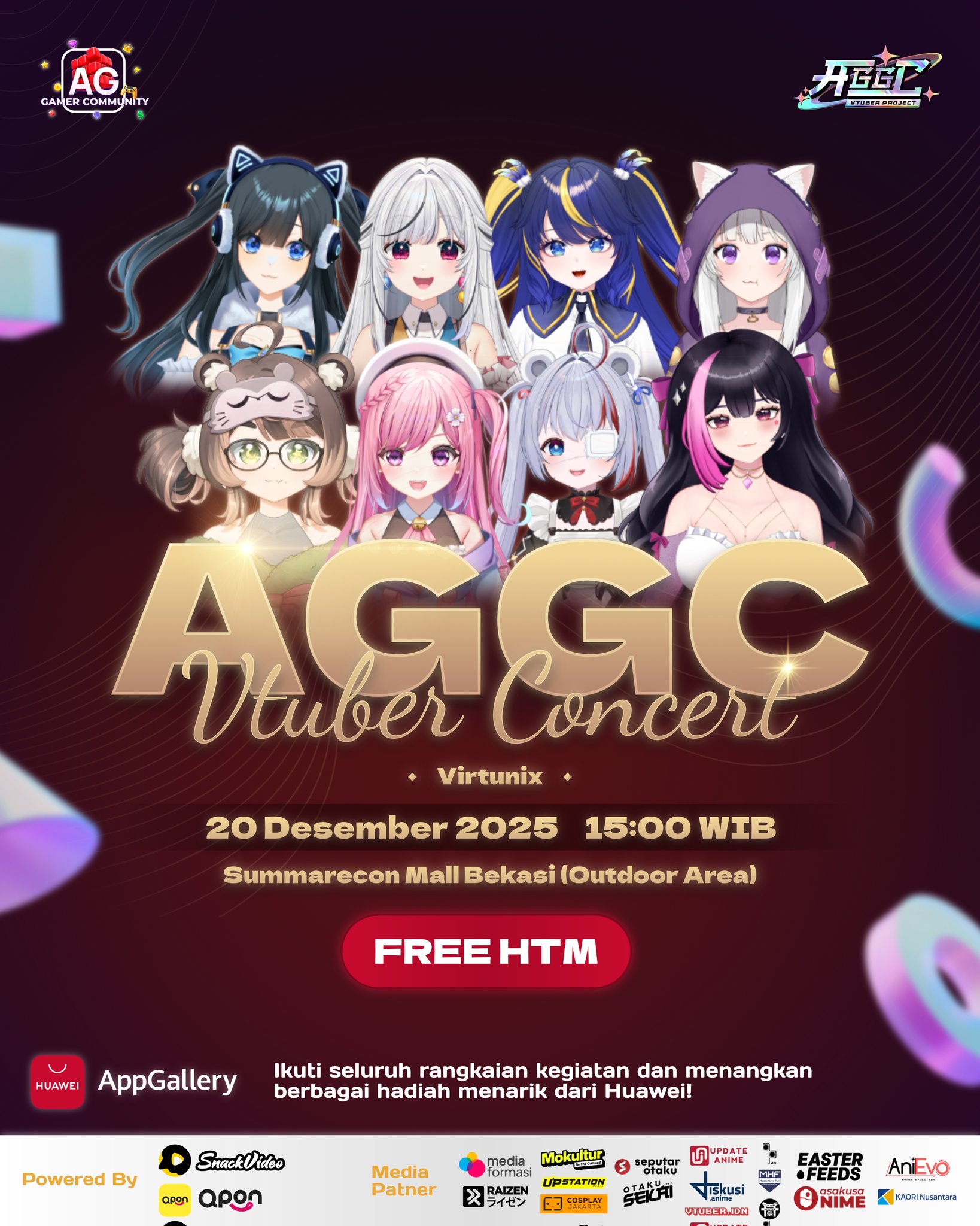 >>107834612Virtunix will be attending AGGC VTuber Concert at 3:00 p.m. WIB today.https://x.com/virtunix/status/2002214995619426574It's being held at Outdoor Area, Summarecon Mall Bekasi