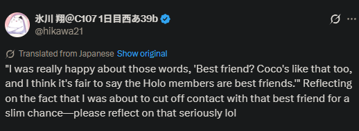 It is though because it’s their brand. It’s the same as Suisei’s incident and Fauna’s graduation. Using their name to upset others is not something they should abide by