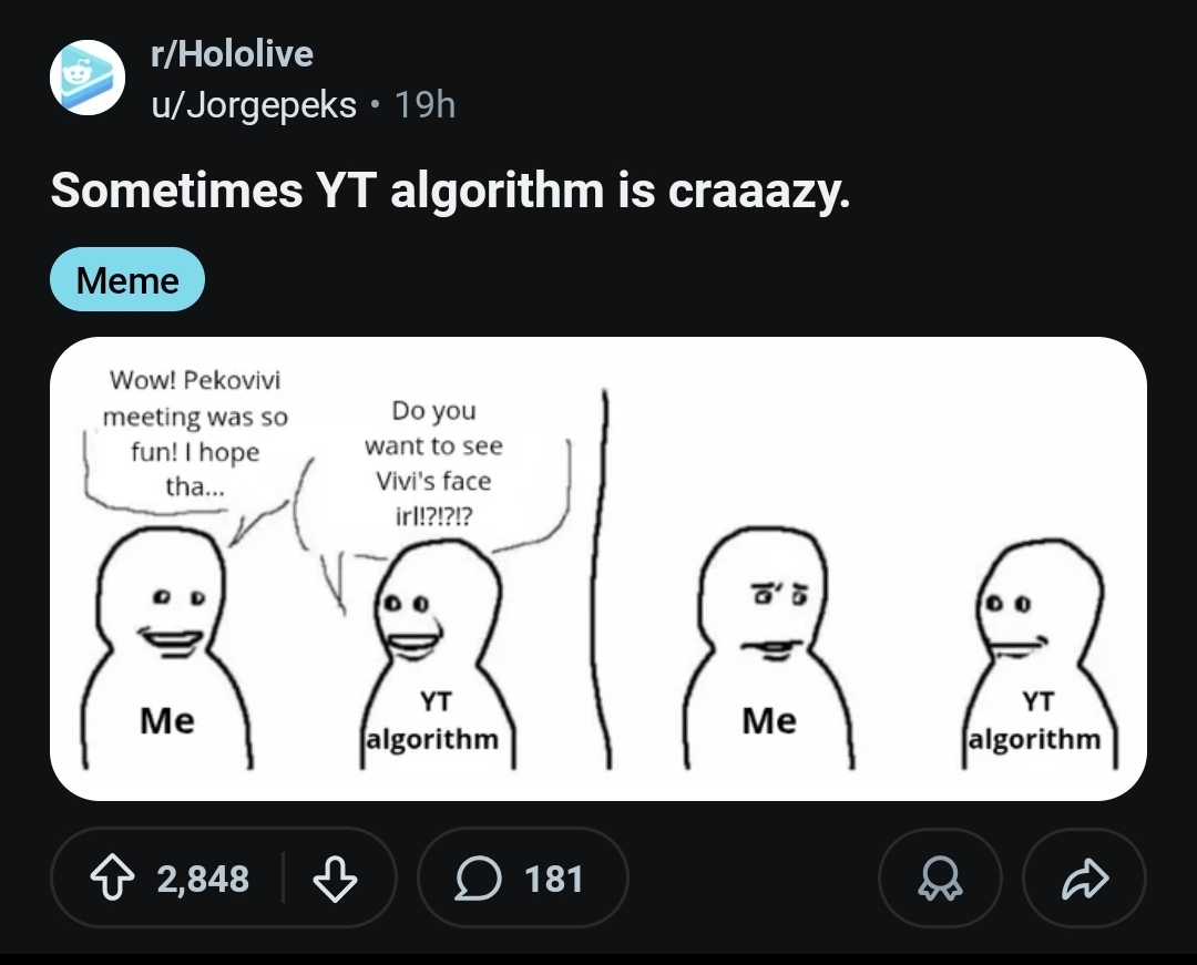 >If I say something not nice about a vtuber I must HATE them and be an anti right