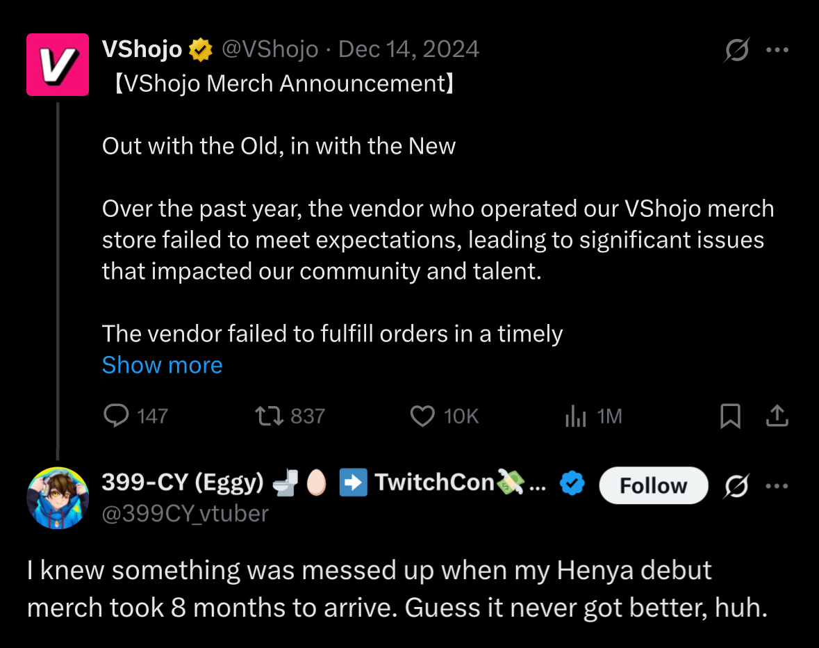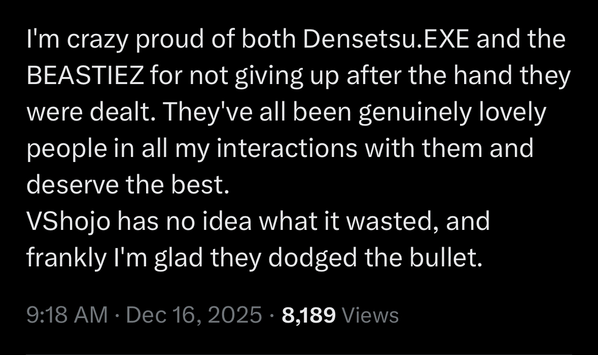 I don’t watch anyone other than Hololive so they could be lying but if it were true they should not have ignored it. The girls are responsible for their fans, just as the fans are responsible for representing their oshis