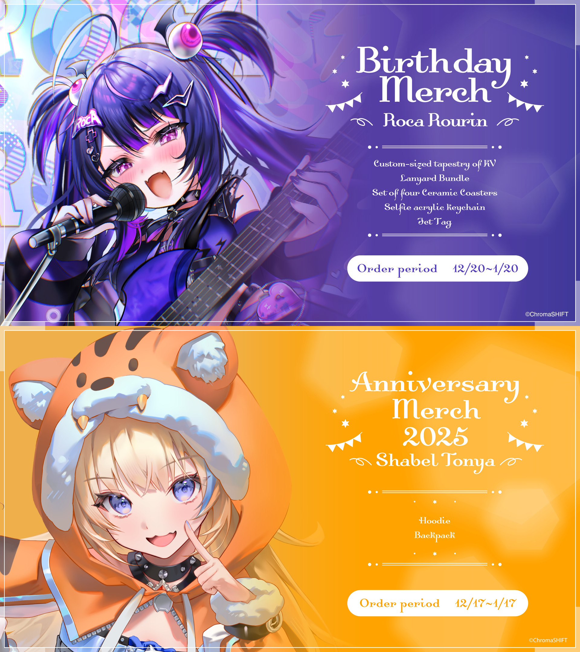 【 Website 】 https://chroma-shift.com/【 YouTube 】 https://www.youtube.com/@ChromaSHIFT_BG【 Twitter 】 https://x.com/ChromaSHIFT_FTW【 Schedules 】 https://holodex.net/?org=ChromaSHIFT / https://pomu.pages.dev/jidf【 Merch 】 https://shop.bravegroup-us.com/pages/projects/chromashift=-=-=-=-=-=-=-=-=-=-=-=-=-=-=-=-=-=-=-=-=-=-=-=-=-=【 Roca Rourin 】[YouTube] https://www.youtube.com/@RourinRoca / [Twitter] https://x.com/RocaRourin / [Twitch] https://www.twitch.tv/RocaRourin【 Poko Rakun 】[YouTube] https://www.youtube.com/@RakunPoko / [Twitter] https://x.com/PokoRakun / [Twitch] https://www.twitch.tv/PokoRakun【 Mia Melonya 】[YouTube] https://www.youtube.com/@MiaMelonya / [Twitter] https://x.com/MiaMelonya / [Twitch] https://www.twitch.tv/MiaMelonya【 Koa Akugaki 】[YouTube] https://www.youtube.com/@AkugakiKoa / [Twitter] https://x.com/AkugakiKoa / [Twitch] https://www.twitch.tv/AkugakiKoa【 Ruby Runeheart 】[YouTube] https://www.youtube.com/@RubyRuneheart / [Twitter] https://x.com/RubyRuneheart / [Twitch] https://www.twitch.tv/RubyRuneheart【 Lalabell Lullaby 】[YouTube] https://www.youtube.com/@LalabellLullaby / [Twitter] https://x.com/LalabellLullaby / [Twitch] https://www.twitch.tv/LalabellLullaby【 Taiga Toragami 】[YouTube] https://www.youtube.com/@TaigaToragami / [Twitter] https://x.com/TaigaToragami / [Twitch] https://www.twitch.tv/TaigaToragami【 Enya Ignis 】[YouTube] https://www.youtube.com/@EnyaIgnis / [Twitter] https://x.com/EnyaIgnis / [Twitch] https://www.twitch.tv/EnyaIgnis【 Shabel Tonya 】[YouTube] https://www.youtube.com/@ShabelTonya / [Twitter] https://x.com/ShabelTonya / [Twitch] https://www.twitch.tv/ShabelTonya【 Chikafuji Lisa 】[YouTube] https://www.youtube.com/@ChikafujiLisa / [Twitter] https://x.com/ChikafujiLisa / [Twitch] https://www.twitch.tv/ChikafujiLisa【 Daisy Dandelion 】[YouTube] https://www.youtube.com/@DaisyDaLion / [Twitter] https://x.com/DaisyDaLion / [Twitch] https://www.twitch.tv/DaisyDaLion【 Cersea Soulstorm 】[YouTube] https://www.youtube.com/@CerseaSoulstorm / [Twitter] https://x.com/CerseaSoulstorm / [Twitch] https://www.twitch.tv/CerseaSoulstorm【 Riki Poppet 】[YouTube] https://www.youtube.com/@RikiPoppet / [Twitter] https://x.com/RikiPoppet / [Twitch] https://www.twitch.tv/RikiPoppetVT【 Yena Youngblood 】[YouTube] https://www.youtube.com/@YenaYoungblood / [Twitter] https://x.com/YenaYoungblood / [Twitch] https://www.twitch.tv/YenaYoungblood=-=-=-=-=-=-=-=-=-=-=-=-=-=-=-=-=-=-=-=-=-=-=-=-=-=【 Friends 】V&U >>>/vt//vnug/V4Mirai >>>/vt//v4m/PixelLink >>>/vt//pxl/Phase Connect >>>/vt//pcg/EIEN Extended >>>/vt//eiex/=-=-=-=-=-=-=-=-=-=-=-=-=-=-=-=-=-=-=-=-=-=-=-=-=-=Previous Thread: >>107840306