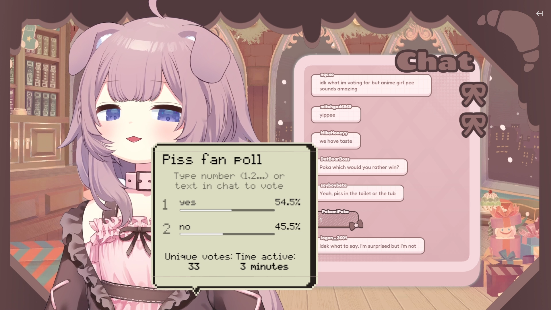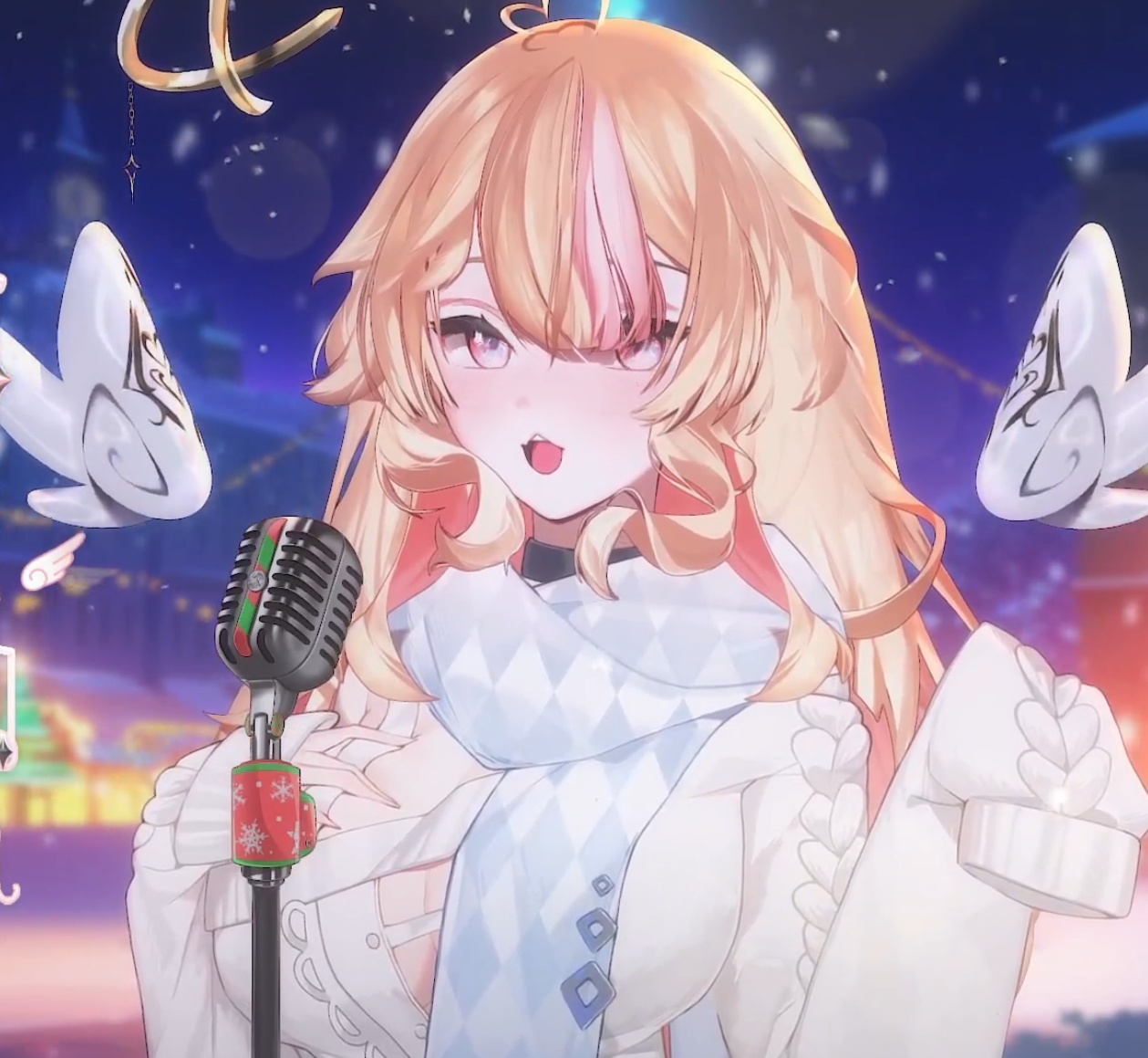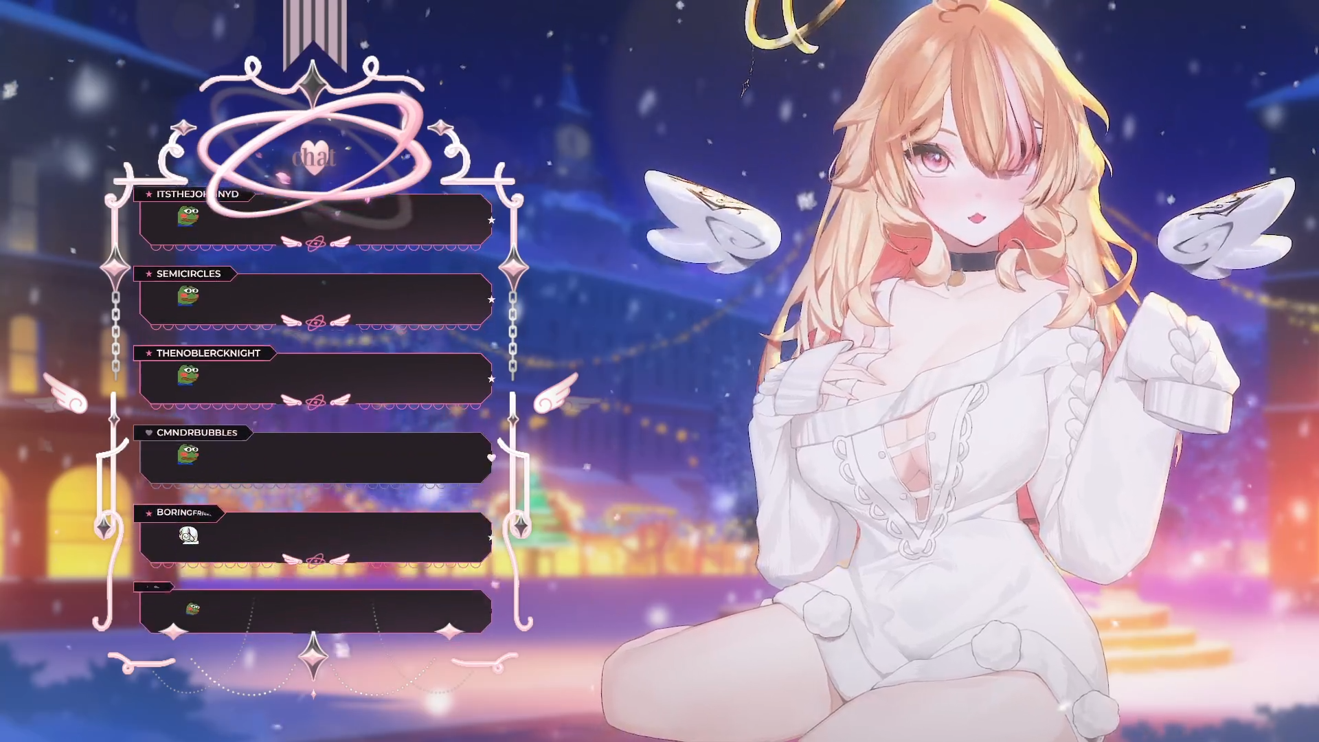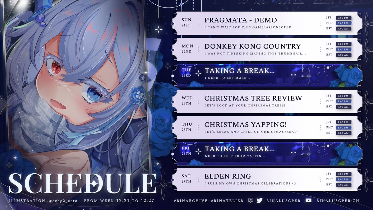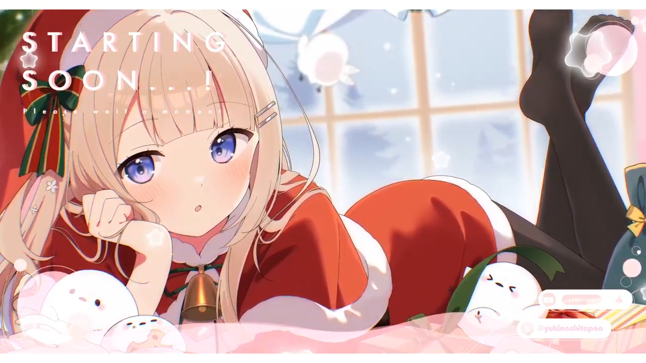 I think it was right of Peo to have herself in stockings for this Christmas themed starting soon screen art. The artist was originally going to have her be barelegged in it, but Peo thought stockings would be more fitting for her.