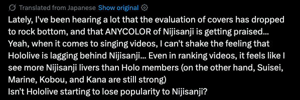 >>107873411If anything they're targeting ex-niji fans, as you can see by how much they've been courting Mint, plus the begging for Rosemi to join them.