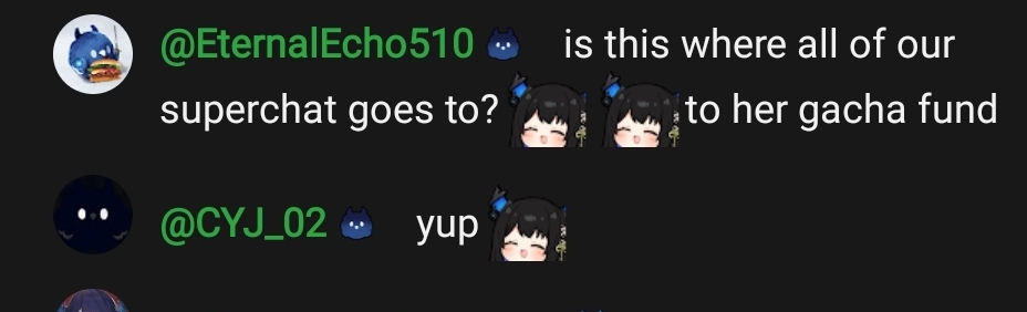 Make sure to reimburse her for what she spent on gacha today! We wouldn't want her to go hungry after showing us such affection today. I really wish she had a Cashapp or Venmo during these times...