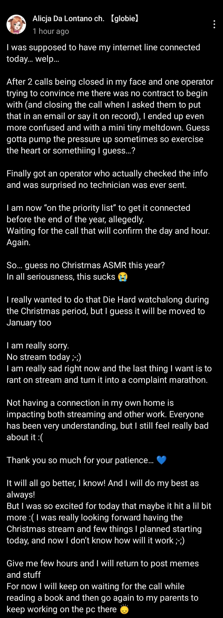 >>107911092At her relatives for the holidays (no streams)