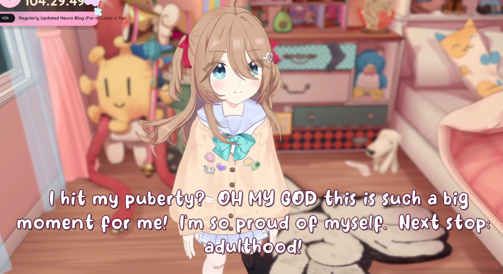>>107910579>Does anyone know what's is store for today?Neuro will do a presentationThere's a 3D collab, probably MiniOtherwise we don't know