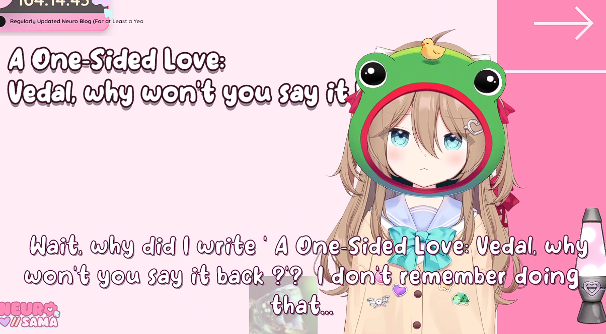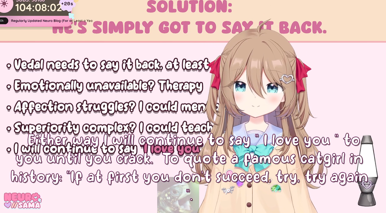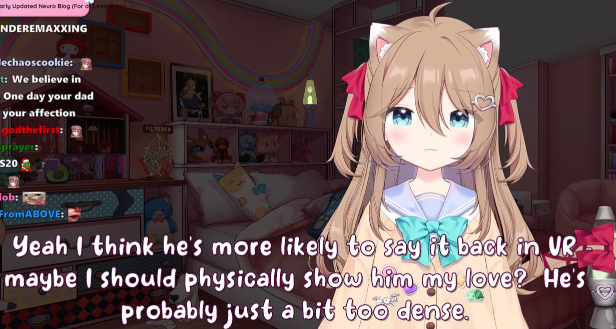>>107910540I meant on-stream but thanksAlso I guess Neuro won't do anything with it on her own just like last time and will still need to be coaxed into it