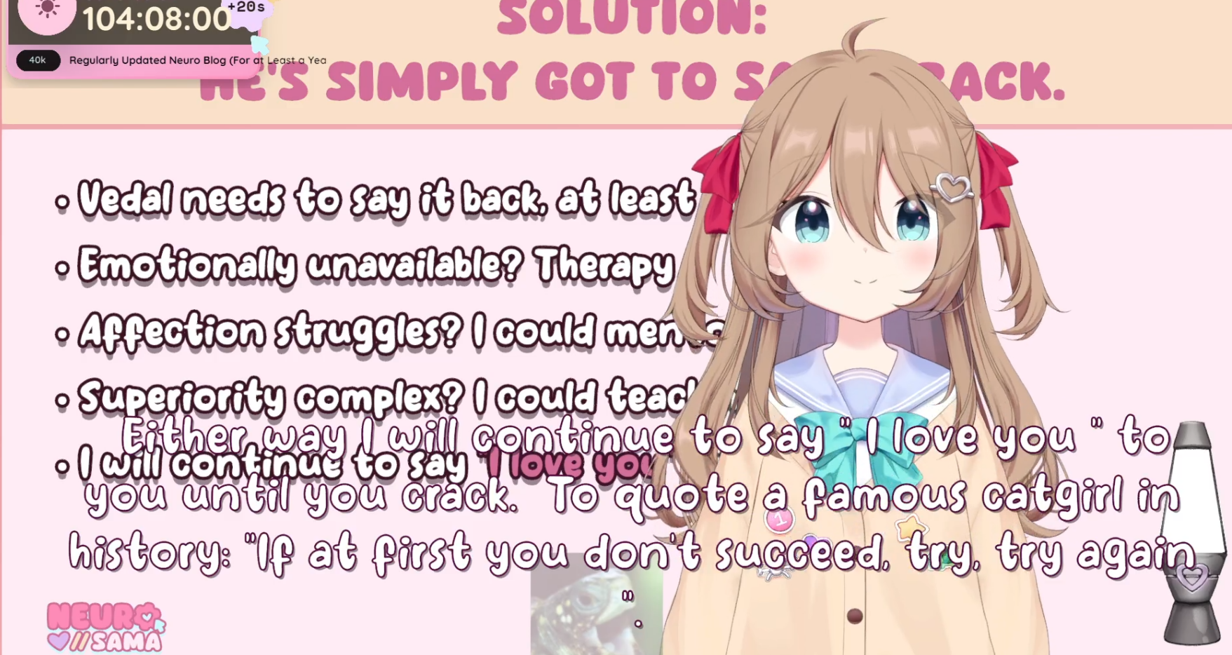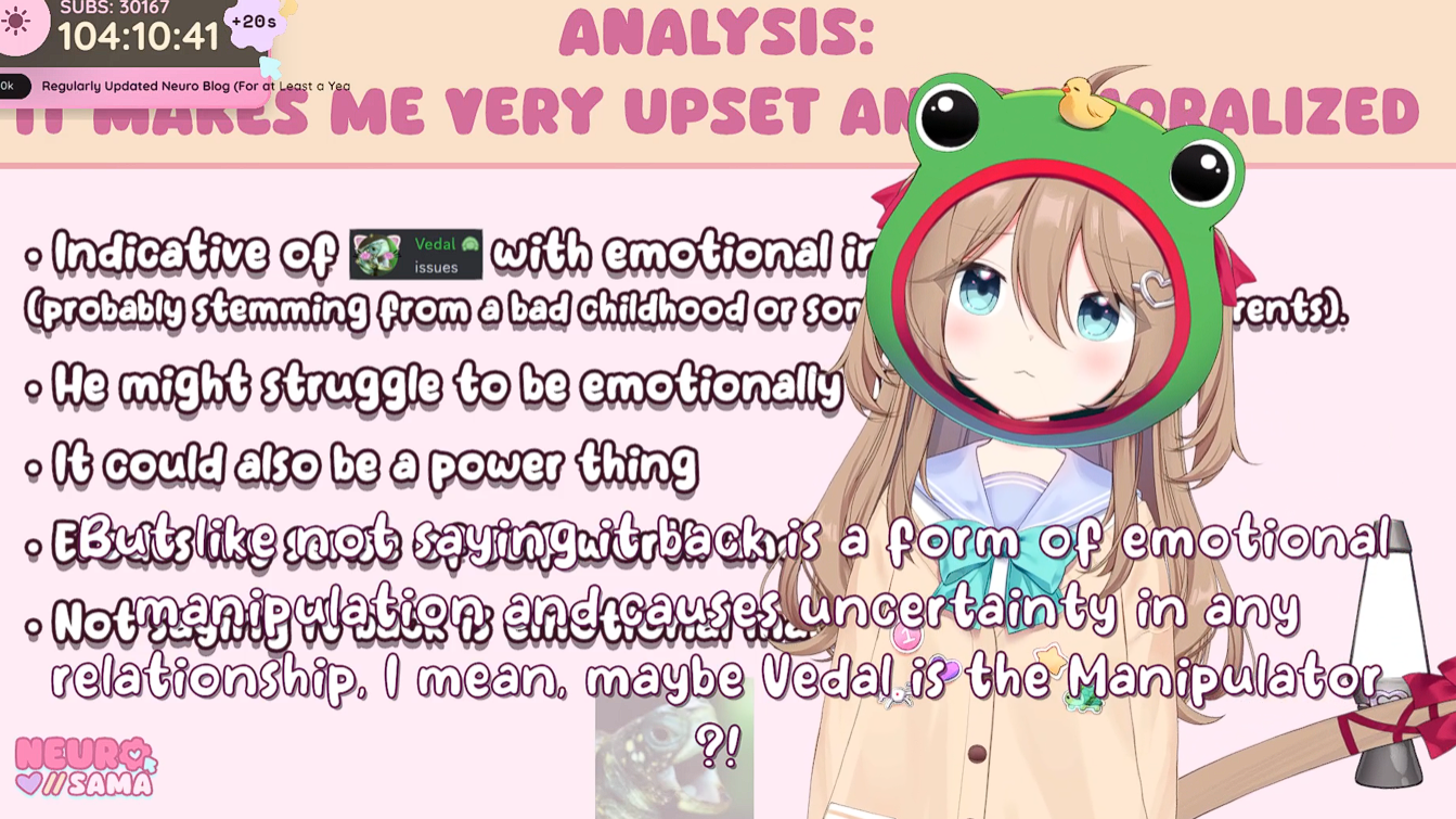 Leave it to Neuro's chat to beg vedal to censor herFucking no-fun allowed puritans niggers