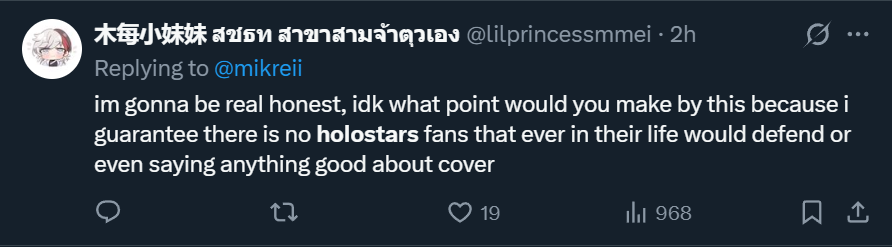 >>107914288> Can other Holomems be as girly as she is?Be a lazy bitch who doesn't stream or even bother to do Christmas karaoke for her fans and only demanding free cheering and money? Thanks, but no thanks.
