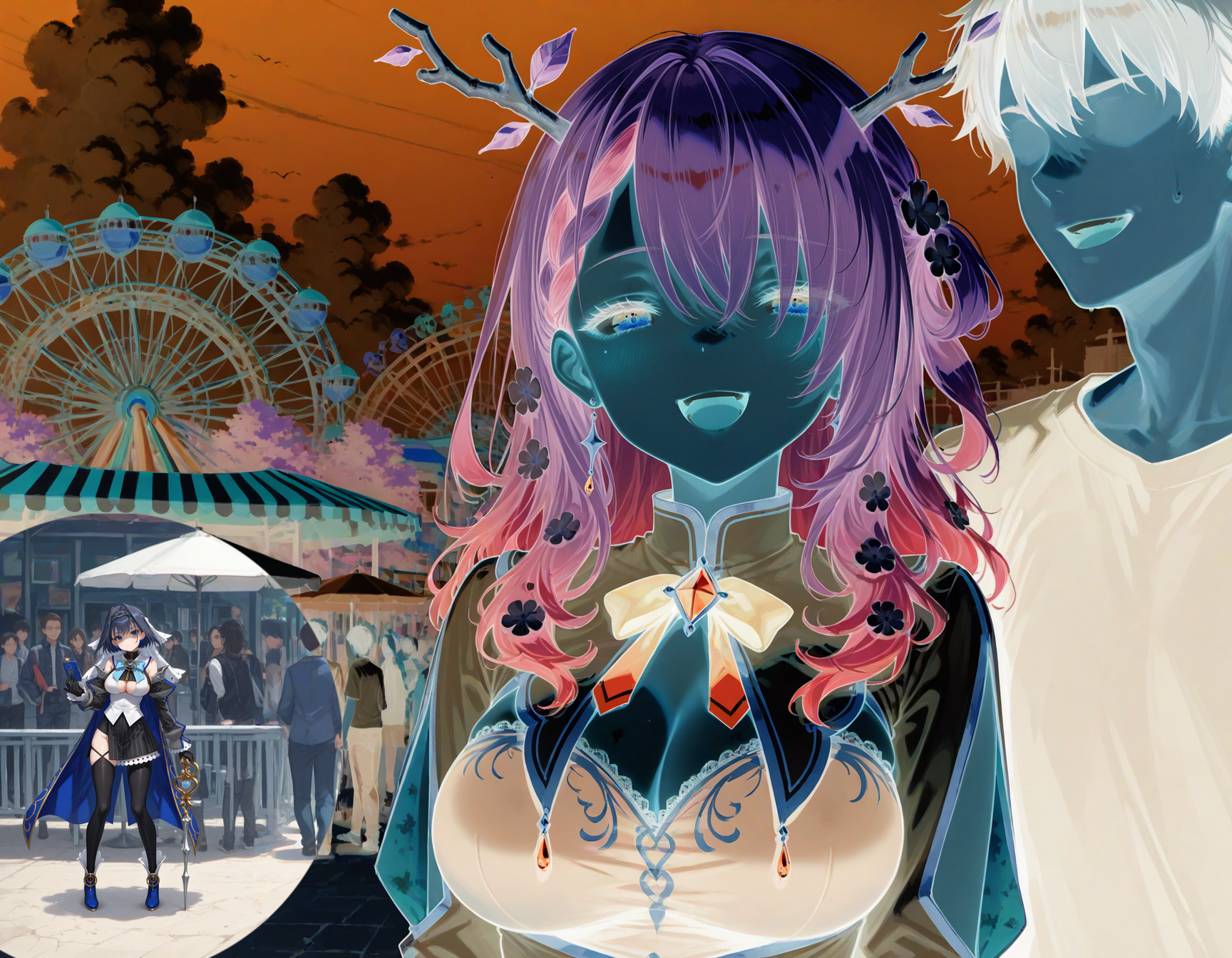 >>107919106Doki and Selen both as vampires with pale skin and huge tits. They can suck on each other's long-ass necks.