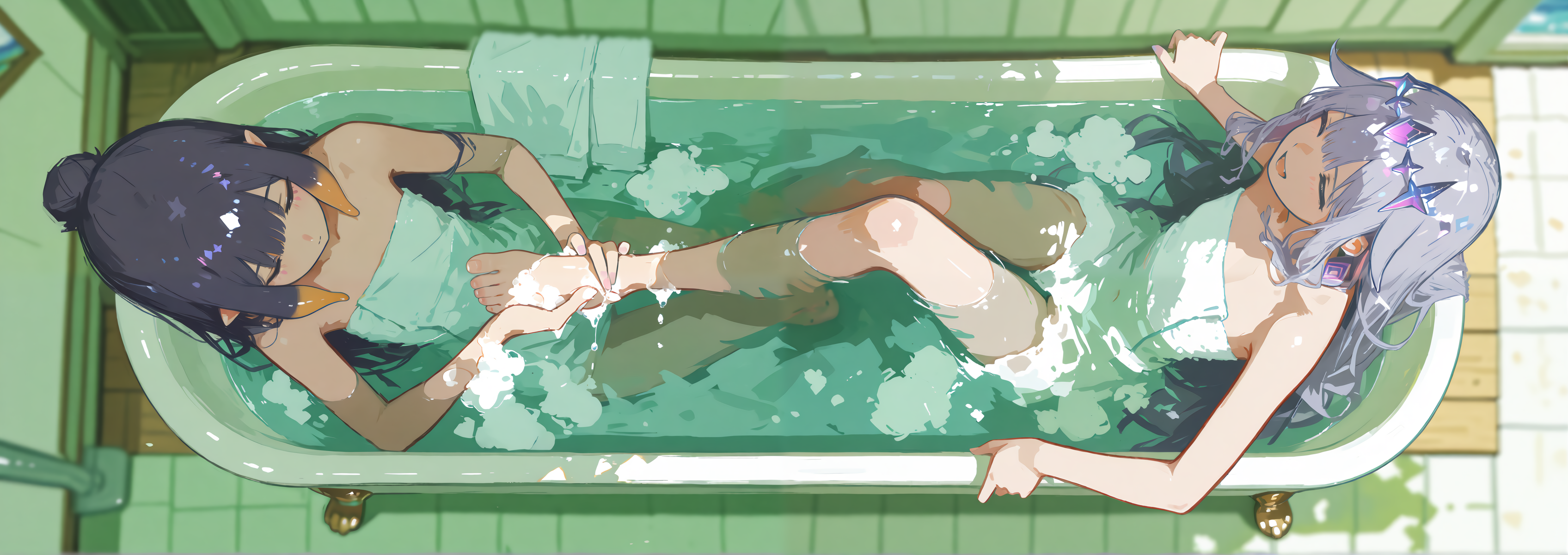 >>107935994How is there water on her lower leg but both her knees and feet are above the water?