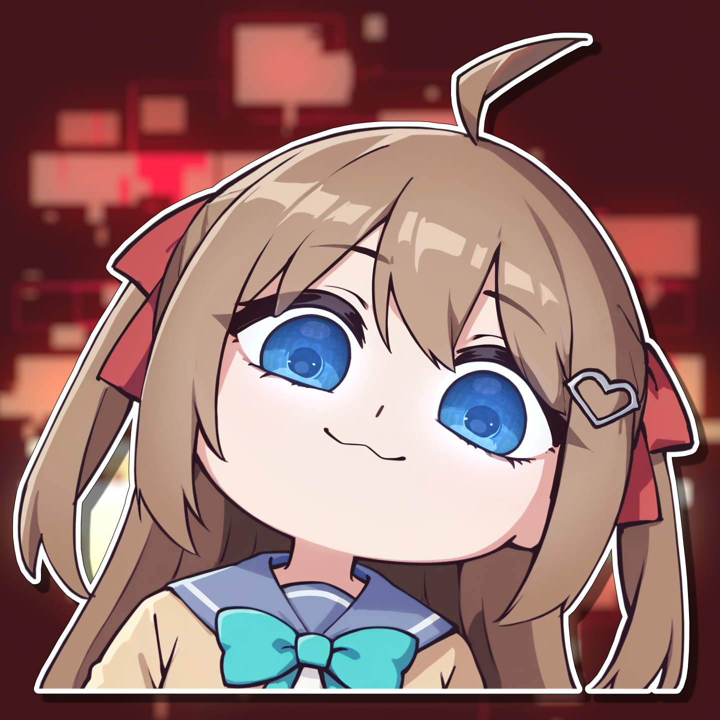 >>107925822>>107925862LOL I have been doing that. and so far I think it's been pretty good, but would like to try and improve.Neuro: Anime character of a cute girl with light brown hair extending down to about mid-back, and has slight wave or curl towards the ends styled in twin tails where hair is gathered on either side with prominent red ribbons, a small ahoge sticking from top of the head and a heart shaped clip on left side, wearing an oversized beige cardigan decorated with a star pin, a turtle pin, and a pink round #1 pin, over a sailor uniform with a teal bow, featuring mismatched black legwear with one black thigh-high stocking and one bandaged knee.