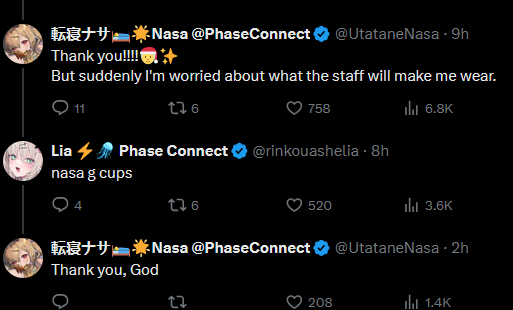 I’ve decided to become a phase fan in 2026 and my oshis will be Kaneko Lumi, Panko, and the new crocodile girl who seems really cute.