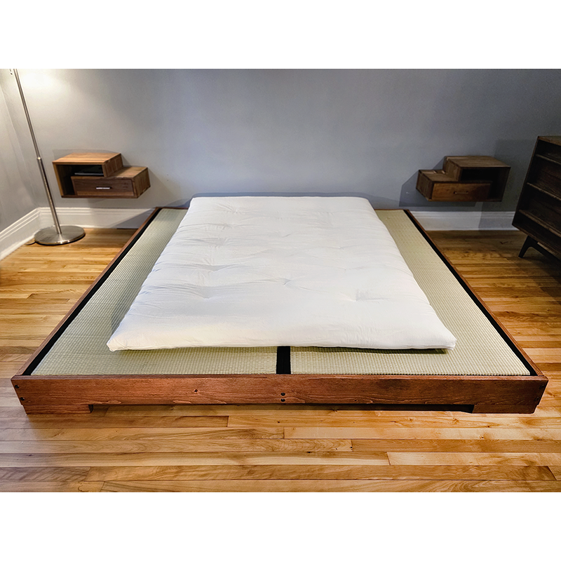 >>107967104They're rectangular blocks constructed in traditional ways with standard sizes (rooms and real estate are measured in terms of the number of tatami it would take to cover the flooring). Tatami are used as the traditional flooring but they're not as widespread anymore as the popularity of wooden flooring and other types of flooring have increased.I think the confusion is coming from the fact that people don't sleep directly on tatami mats. Instead they sleep on a type of traditional Japanese mattress that they can roll up and put away. Because of the properties of the traditional mattresses it is better to place them on tatami instead of on other types of floors like hardwood. So there are bed frames designed specifically to hold tatami mats (see pic) that you can then put your mattress on top of.