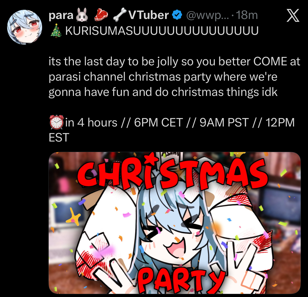 Christmas is à retarded holiday to stream anyway, everyone's with their family so I can't watch her anyway even if they stream, and no one outside of wees trying to imitate their animés sees it as a romantic holiday so putting in so much effort for these streams is wierd. If that her my oshi not stream during Christmas so I can go to my parents without worrying I'm going to miss kino, it's better if they do special streams in January when everyone's back