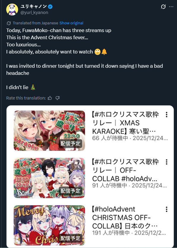 Phew... my oshi streamed for an hour today that means no cold chicken and zero chances of her getting railed in the other 23 hours of the day!