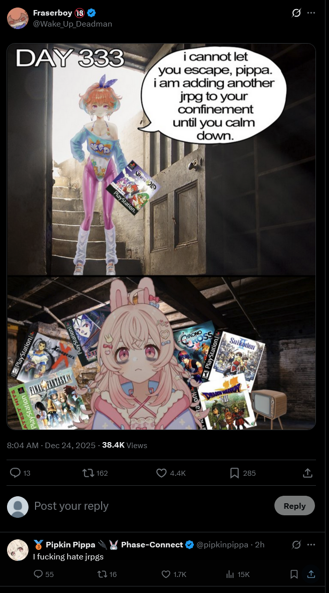 Brutal that Pekora cucked her fans one Christmas eve and now dedicates one day every year to both mock her fans and to make a day all about her antis. She even made a tamagotchi to commemorate the cuckening