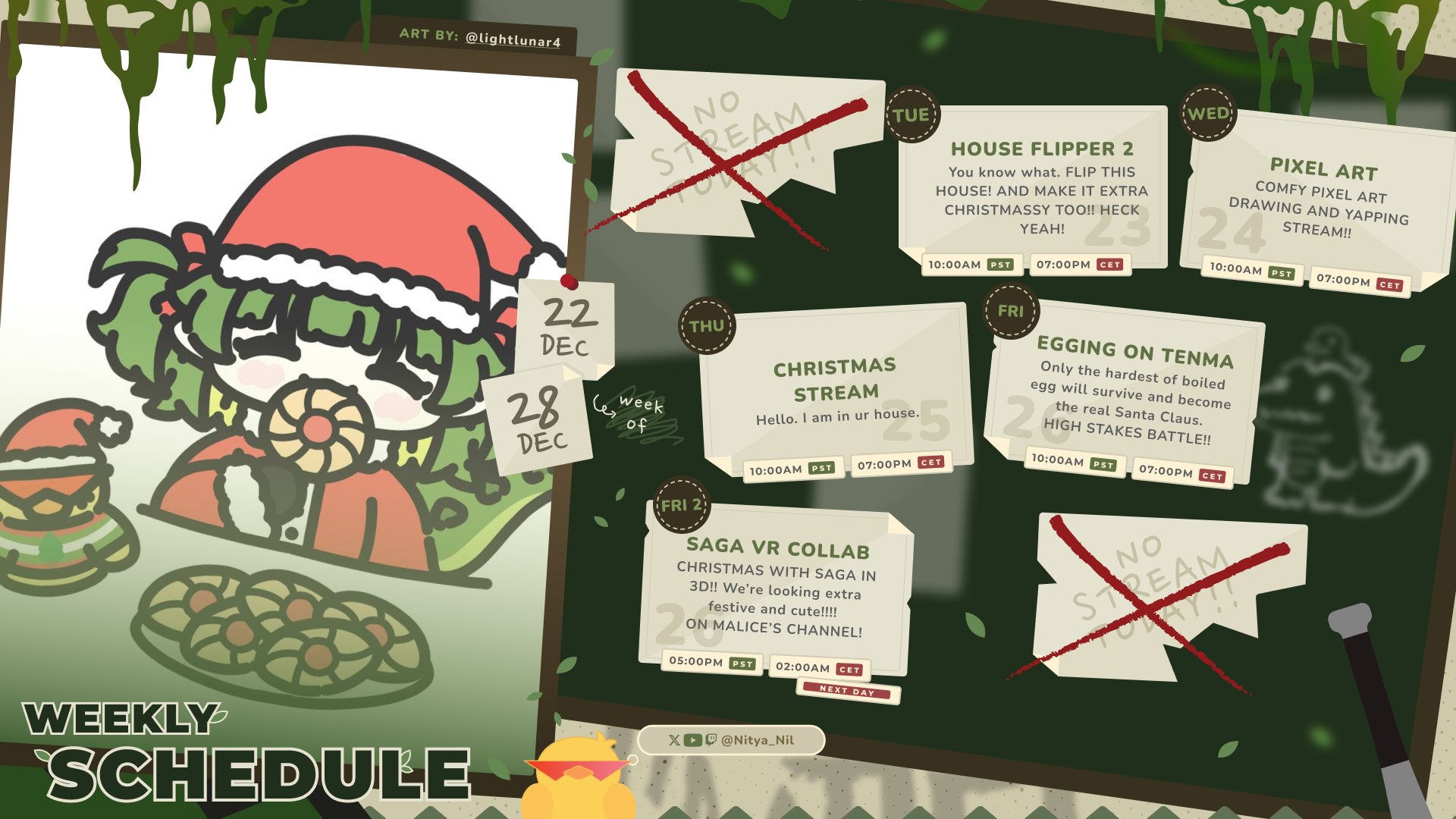 Merry Nitmas Edition!Dedicated thread for PhaseSaga's cute, family friendly, Minecraft addicted, Boer, r rolling, crocodile, bully senpai! Saga friends and Barbie friends welcome!>Links:YouTube: https://www.youtube.com/@Nitya_NilTwitch: https://www.twitch.tv/nitya_nilX: https://x.com/Nitya_NilSchedule: https://x.com/Nitya_Nil/status/2003816170194186682Donate: https://streamelements.com/nitya_nil/tip>Christmas merch available RIGHT NOWhttps://shop.phase-connect.com/collections/season-of-frost-snow-veil-collection>Saga Generals>>>/vt/saga/>Previous thread>>107846424