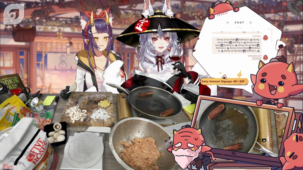 >>108007591>LilyI'm watching the VOD of OniGiri's cooking stream with Nina Kosaka, and it's at the part where they're raided by Shylily