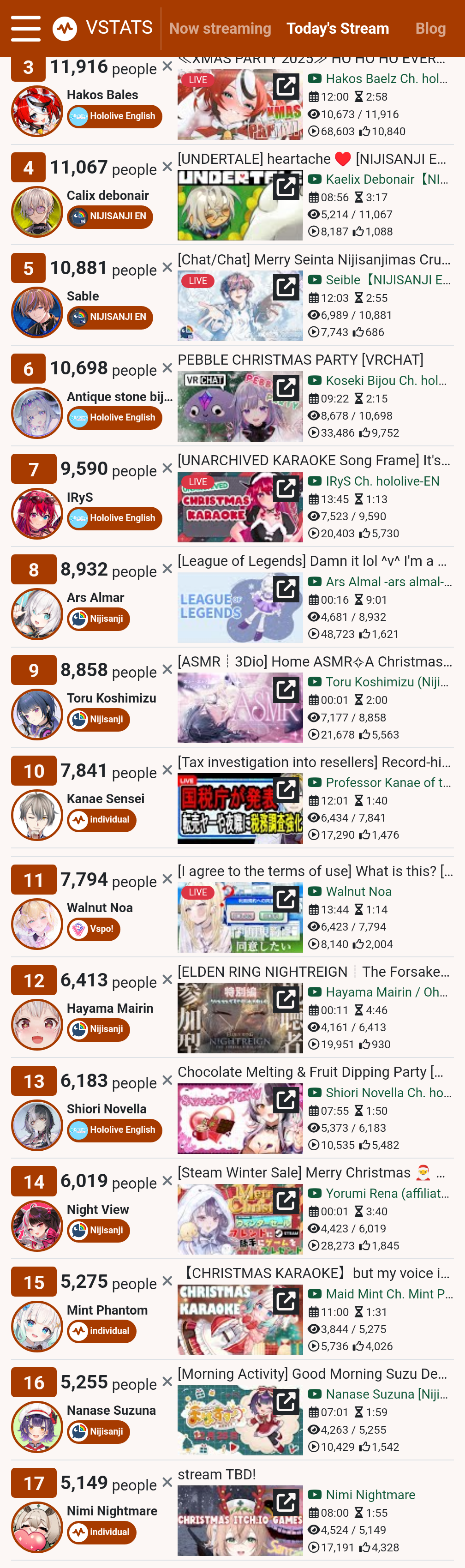 *GENERAL NUMBERFAG SITES*>https://playboard.co/en/>http://ikioi-ranking.com/>https://vrabi.net/>https://www.vstats.jp>https://live-ranking.userlocal.jp/vtuber-ranking>https://vt.poi.cat/Hololive sites>https://www.hololyzer.net/youtube/index.html>https://trackholo.live/en/>https://holo-spotify-stats.jirikunes.eu/Twitch sites>https://sullygnome.com/>https://twitchtracker.com/>https://stats.roki.sh/>https://streamscharts.com/