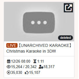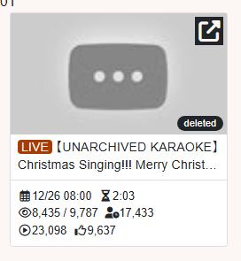>>108000796No, she got a 9K something unarchived karaoke and a few other sub 10K archived before