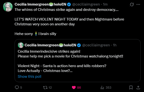 Why even make a poll after she said it was Violent Night yesterday?