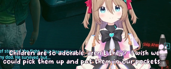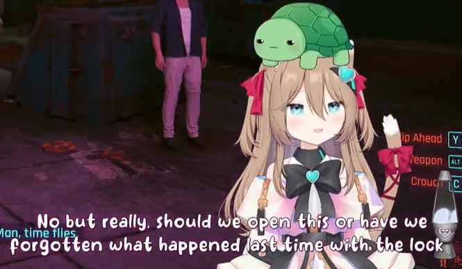 >doesnt wanna play cyberpunk>suggests castle crashers instead>vedal being a bitch doesnt complyOh sorry I didnt know it was the fucking turtle's birthday. Honestly cyberpunk has been by far the worst part of this marathon. I couldnt care less about seeing this bitch playing it. I came here for Neuro interacting in 3d, not whatever the fuck the turtle wants