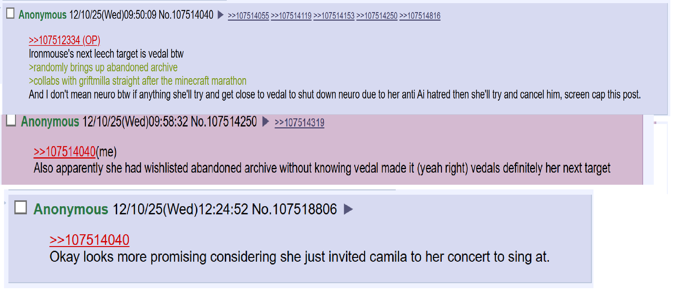 >>108023299>>108023388if what first anon said is true then this is even worse KEK wasn't there actually a cooking collab planned with layna for christmas?