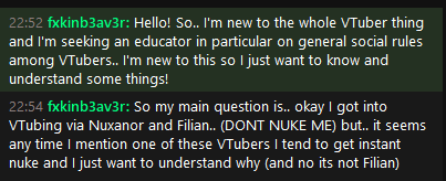 >>108055679Dude tried to pull some shit like that in Mel's stream earlier and got bopped. He knows what he's doing.