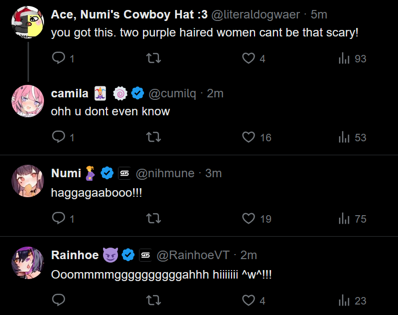 Currently trying to astral project into Camila's body so I can experience Numi and Rainhoe sexually harassing me
